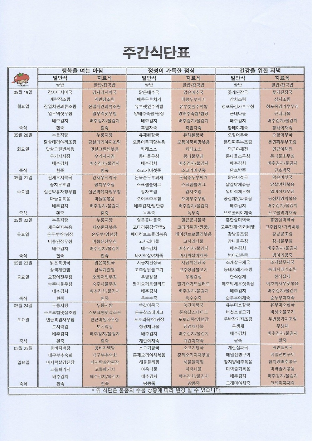 마산 더편한요양병원 #5월 셋째주식단표 페이지 정보 작성자 관리자 댓글 0건 조회 223회 작성일 25-05-19 09:00 목록 본문 안녕하세요 마산 더편한요양병원 주간식단표 알려드립니다^^*저희 더편한요양병원에서는 대학원 석사를 취득한 임상영양사가 건강하고 맛있는 식사를 제공하고 있습니다. 댓글 0 댓글목록 등록된 댓글이 없습니다.