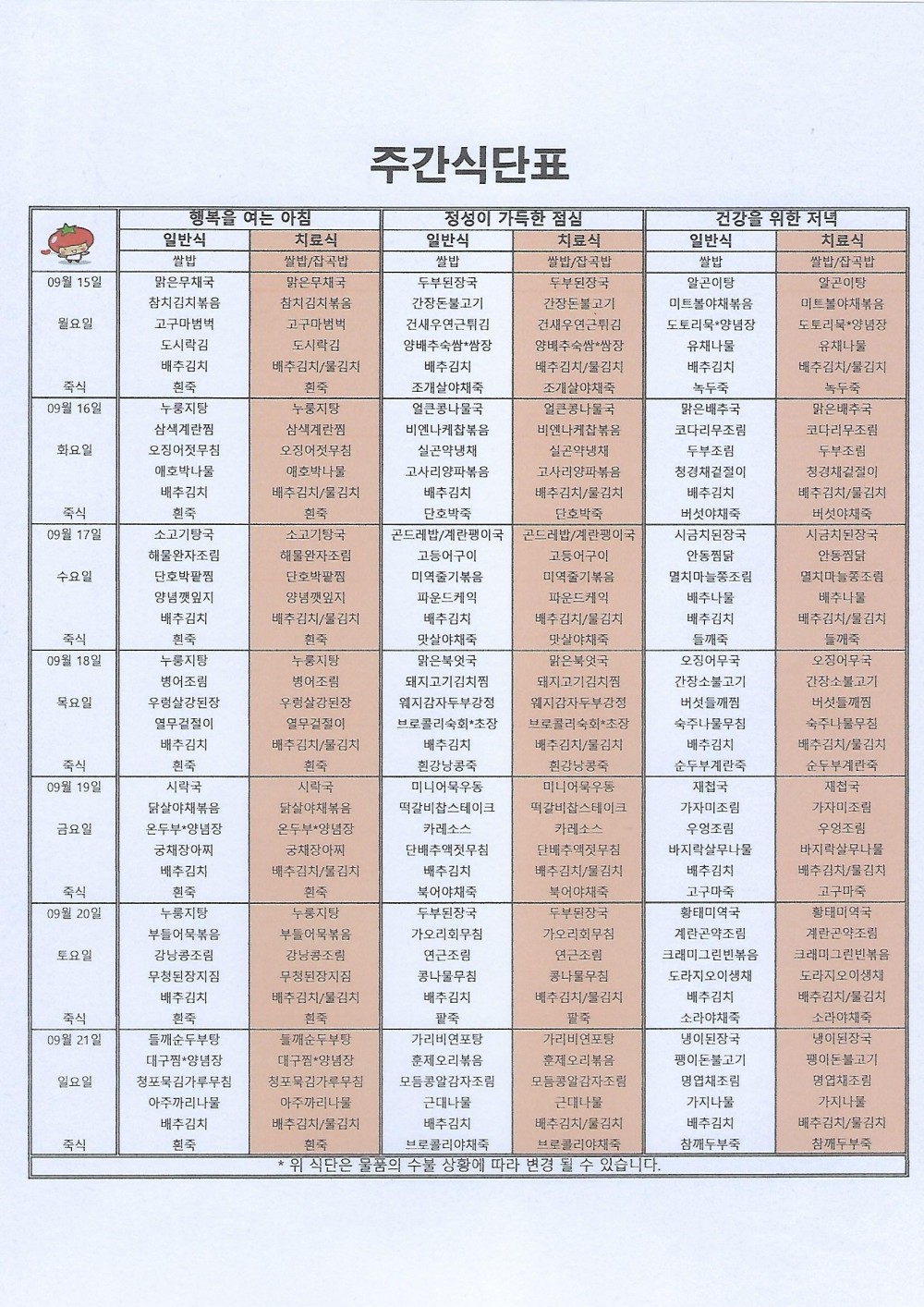 마산 더편한요양병원 #9월 셋째주식단표 페이지 정보 작성자 관리자 댓글 0건 조회 165회 작성일 25-09-15 09:50 목록 본문 안녕하세요 마산 더편한요양병원 주간식단표 알려드립니다^^*저희 더편한요양병원에서는 대학원 석사를 취득한 임상영양사가 건강하고 맛있는 식사를 제공하고 있습니다. 댓글 0 댓글목록 등록된 댓글이 없습니다.