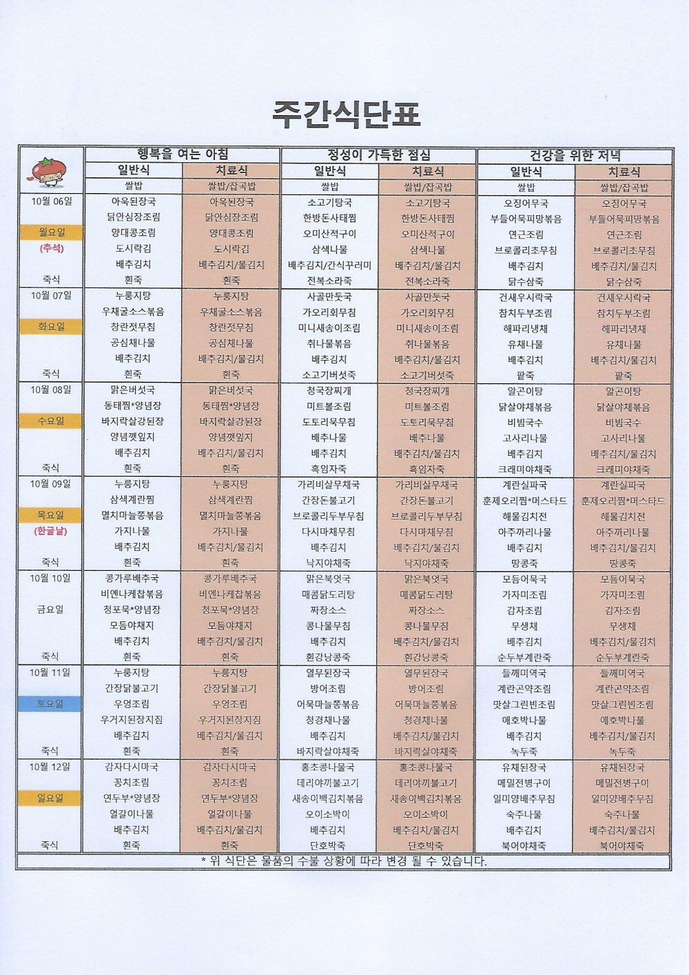 마산 더편한요양병원 #10월 첫째주식단표 페이지 정보 작성자 관리자 댓글 0건 조회 25회 작성일 25-10-06 08:00 목록 본문 안녕하세요 마산 더편한요양병원 주간식단표 알려드립니다^^*저희 더편한요양병원에서는 대학원 석사를 취득한 임상영양사가 건강하고 맛있는 식사를 제공하고 있습니다. 댓글 0 댓글목록 등록된 댓글이 없습니다.