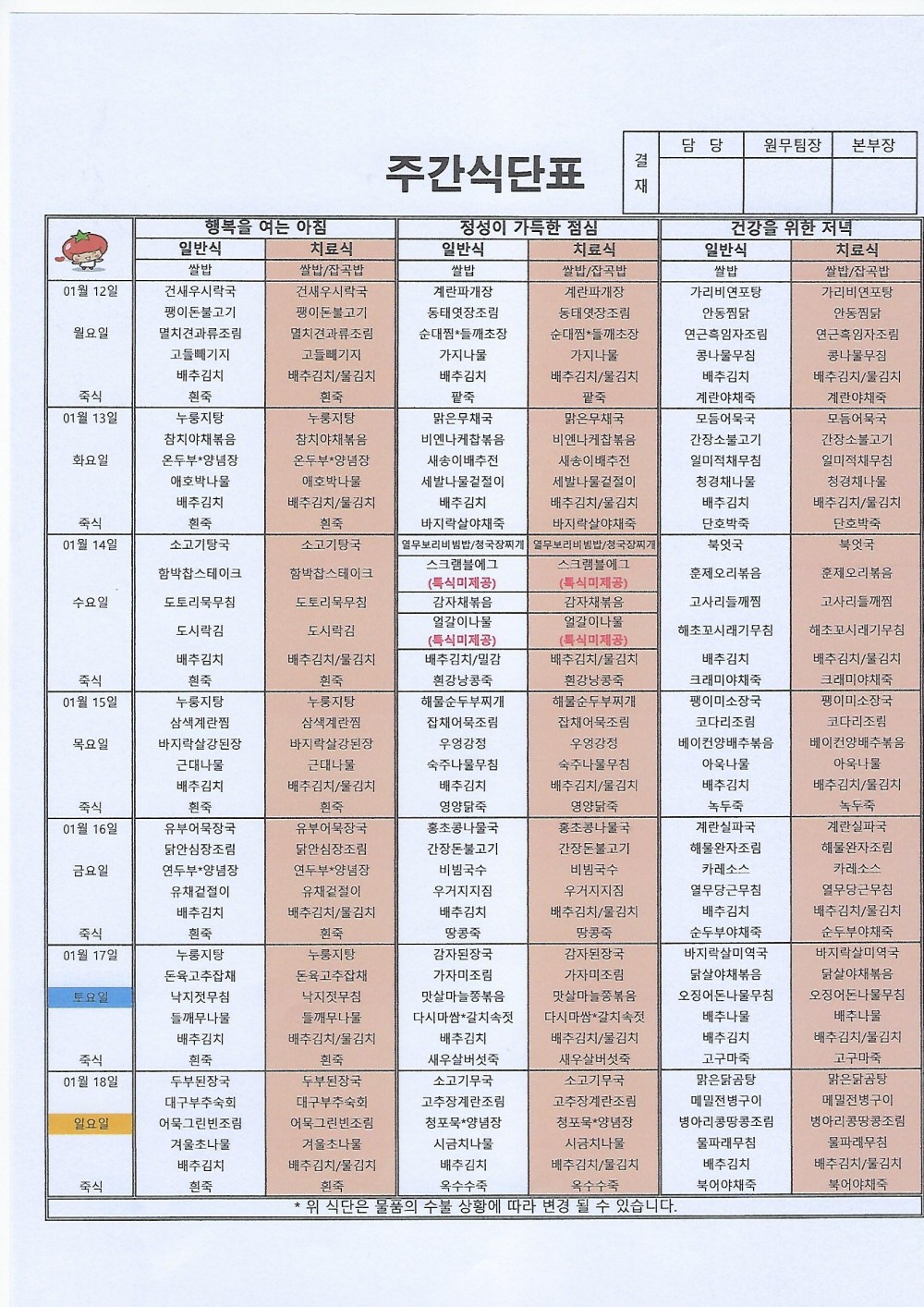 마산 더편한요양병원 #1월 둘째주식단표 페이지 정보 작성자 관리자 댓글 0건 조회 46회 작성일 26-01-12 09:09 목록 본문 안녕하세요 마산 더편한요양병원 주간식단표 알려드립니다^^*저희 더편한요양병원에서는 대학원 석사를 취득한 임상영양사가 건강하고 맛있는 식사를 제공하고 있습니다. 댓글 0 댓글목록 등록된 댓글이 없습니다.